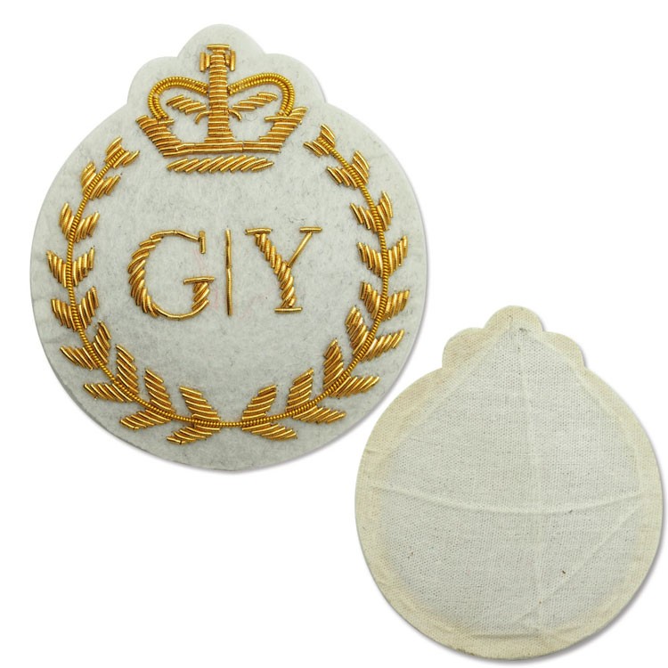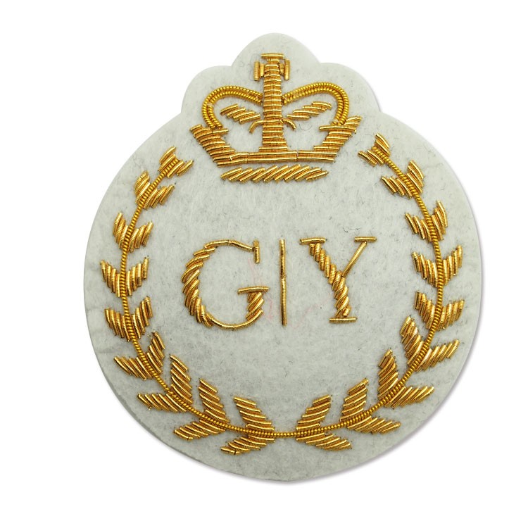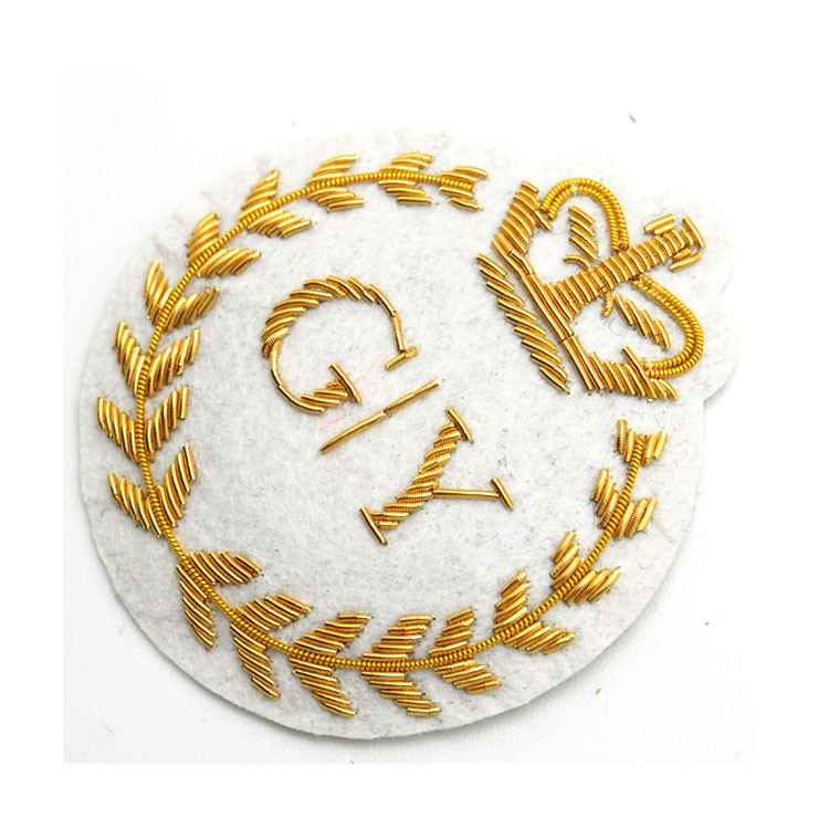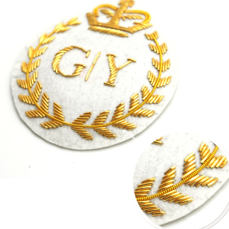 印度絲繡花章,早起源于印度,故又稱印度絲徽章、銅絲徽章、彈簧絲徽章、印度繡花章、金屬刺繡章等